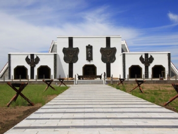 大汗行宫宫殿区:占地30万平方米,宫殿范围内由宏伟壮阔的宫门、代表民族信仰的长生天牌坊、战场上的金戈铁马的还原场景、独具特色的议事金帐、具有强烈宗教色彩并象征神在其位的敖包和集佛教、道教、萨满教于一体的祭天台等建筑共同构成景区中轴线。宫墙左侧为元朝的发展史,记载了蒙古民族从原始逐水草而居的游牧生活到成吉思汗开国和元朝建立并发展壮大创造一片盛世的景象。生动的刻画出在这茫茫大草原中曾经兴旺发达雄霸百年的蒙古民族征服世界,并创立了世界上最大疆域版图的元朝在其发展的过程中部分最具代表性的历史场景。右侧是由600个蒙古包组成的兵营,展示了蒙古特色军帐文化。