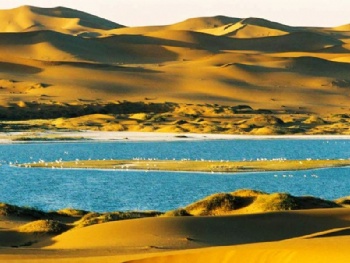腾格里沙漠是中国第四大沙漠,也是现在流动速度最快、周边人口密度最大的沙漠,是沙尘暴的主要发源地之一。月亮湖是腾格里腹地的纯天然湖泊,也是一个完全处于原始状态的沙漠绿洲。